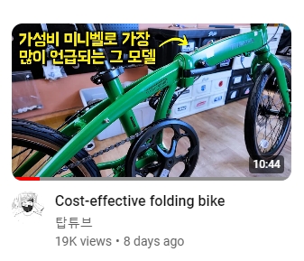 - 이전글[유튜브 : 탑튜브님] 샥이 있는 접이식 미니벨로 (티티카카 플라이트 S9 HD) 24.07.23